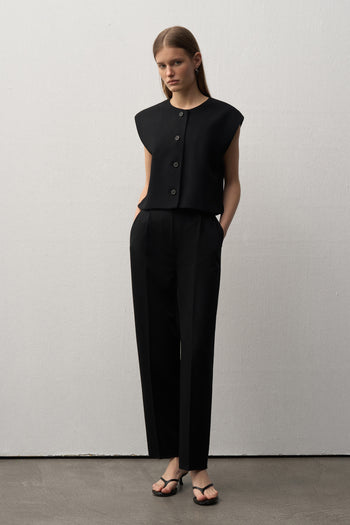 Yüksek bel, iki yan cep mevcut, dökümlü formda ve 95 cm boy ölçüsüne sahiptir.