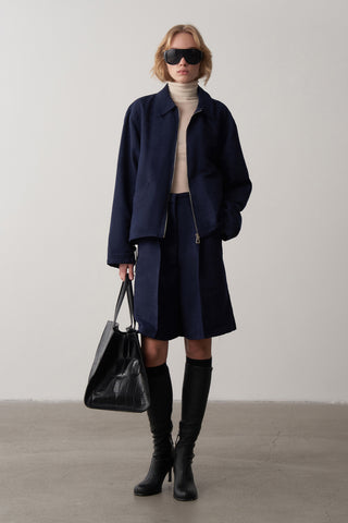 Oversize kalıp, gömlek yaka, düğme kapamalı ve 74 cm boy ölçüsüne sahiptir.