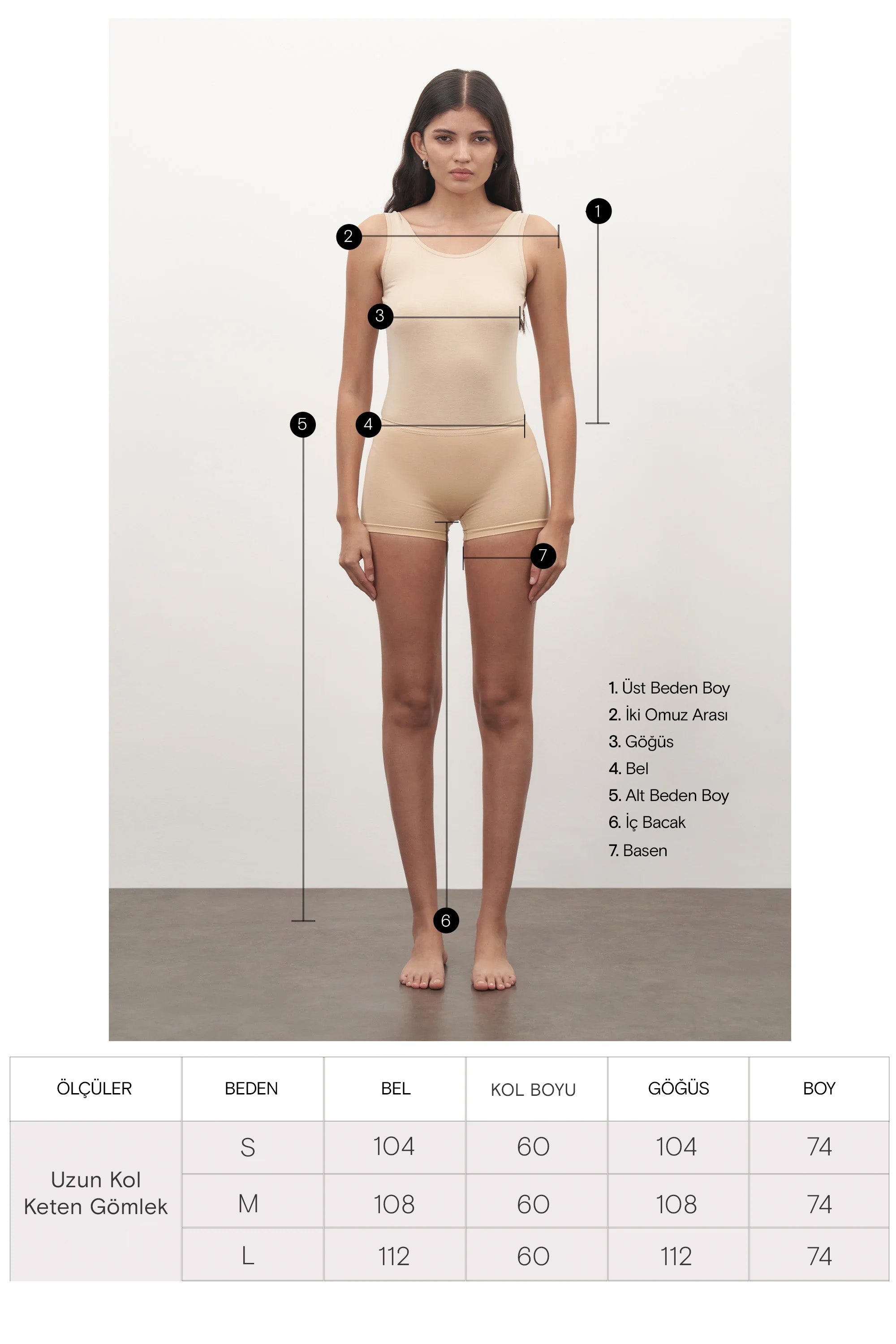 Model ölçüleri: Boy: 1.83 cm Göğüs: 82 cm Bel: 60 cm Basen: 89 cm
