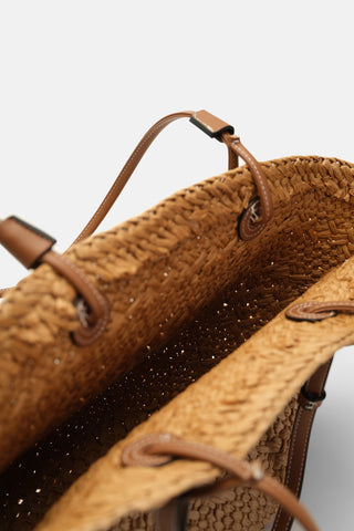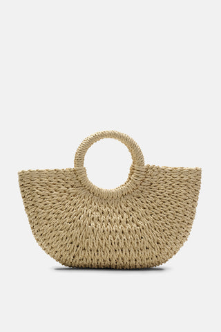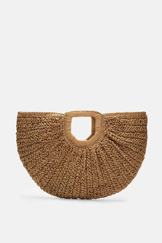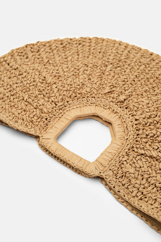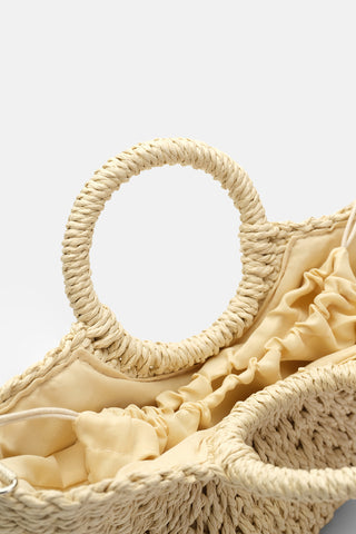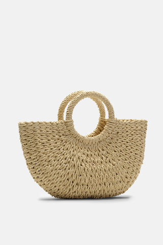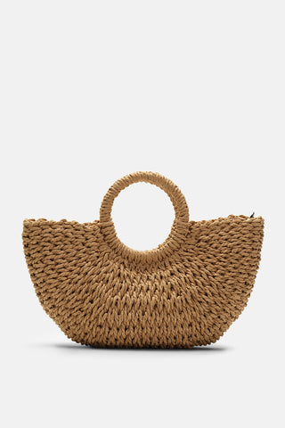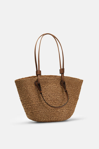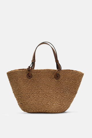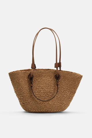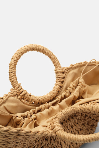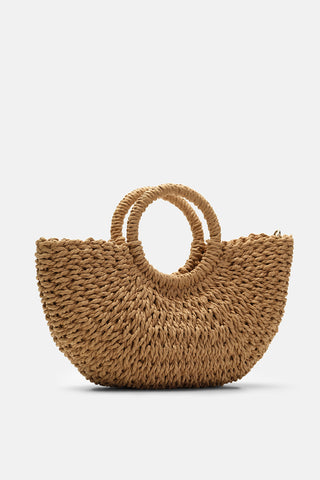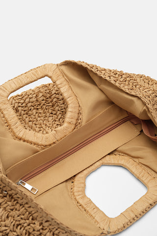 Fiber kumaş, içi astarsız, çift saplı, iki kısa el kulblu Hasır Omuz Çantası.