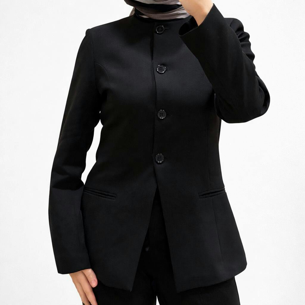 Slim kalıp, yarım vatka, düğme kapamalı, arka bel ayarlanabilir kemer detaylı, süs cep ve 72 cm boy ölçüsüne sahiptir.