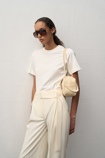 Pantolon: Yüksek bel form, geniş paça, iki yan cep ve standart boy ölçüsüne sahiptir.