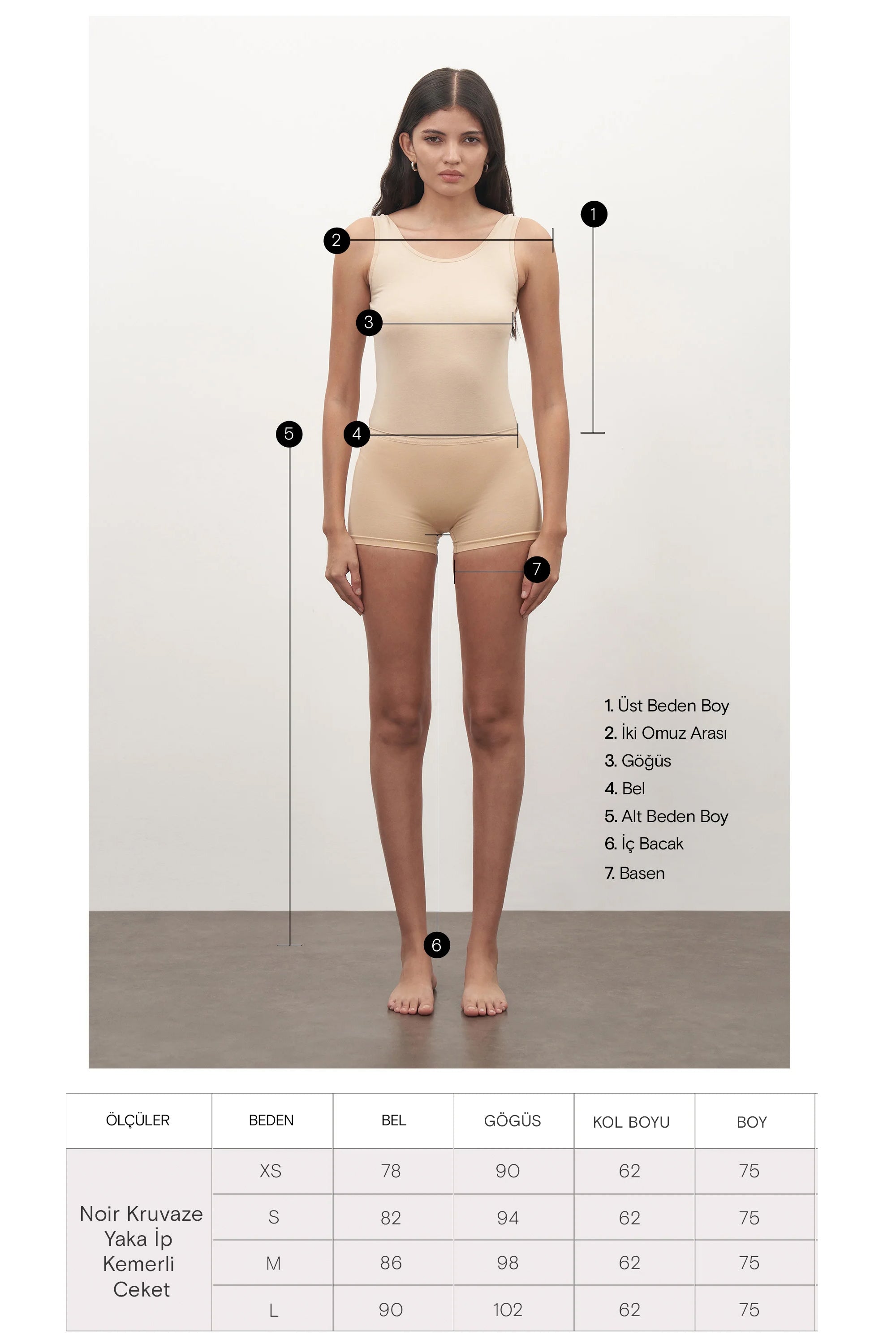 Noir Kruvaze Yaka İp Kemerli Ceket