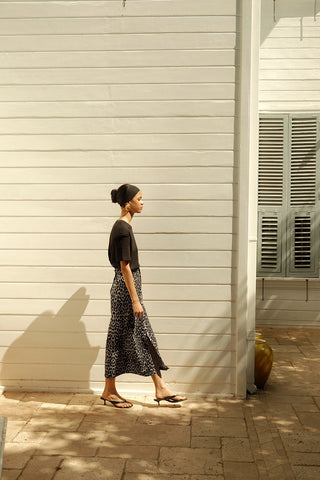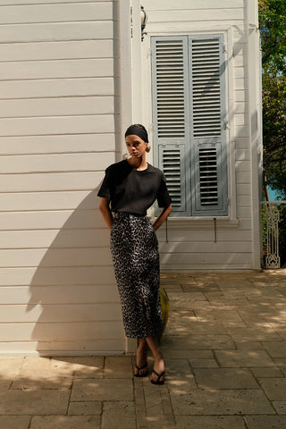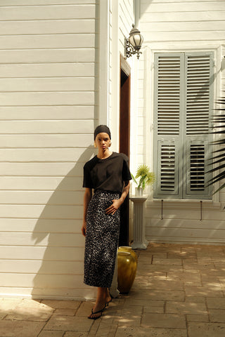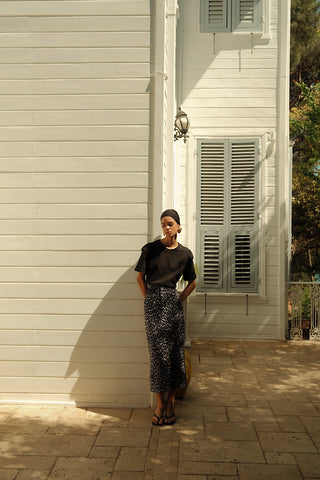 Yüksek bel form, iki yan iki arka cep, önü yırtmaçlı ve 36 cm yırtmaç boy, 88 cm boy ölçüsüne sahiptir.