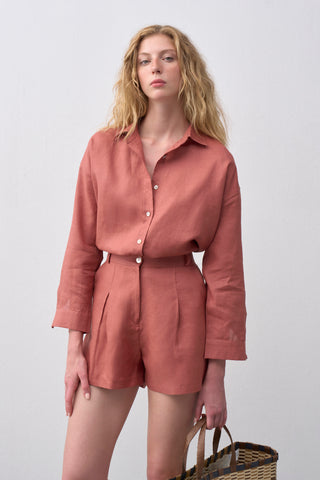 Limited Edition Keten Gömlek Şort Takım, Gömlek ve Şort olarak iki parçadan oluşmaktadır.