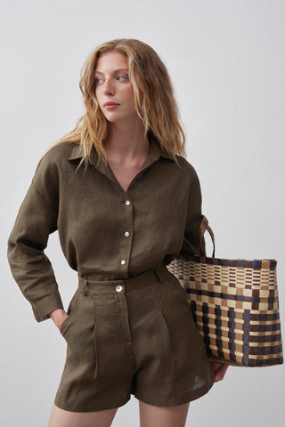 Yüksek bel form, bel lastikli , 42 cm boy ölçüsü ve iki yan cep mevcuttur.