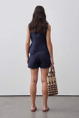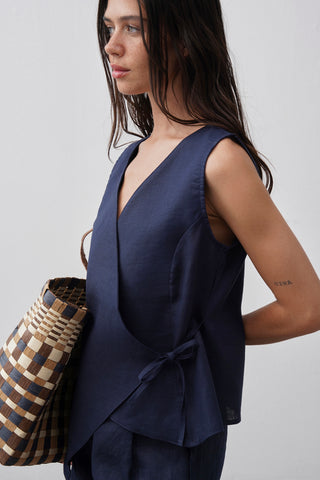 V yaka, kendi kumaşından kemerli ve 54 cm boy ölçüsüne sahip.