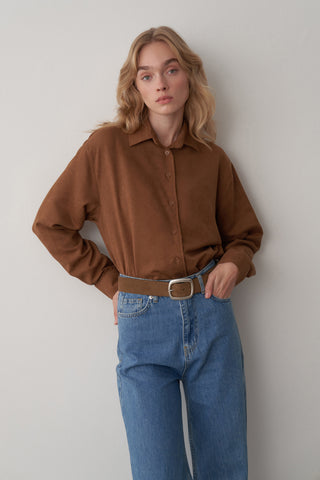 Yüksek bel form, önü fermuarlı, beş cepli ve metal düğmeli ve 115 cm boy ölçüsüne sahiptir.