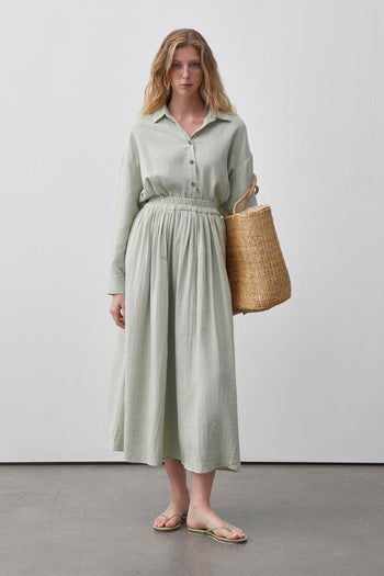 Müslin Gömlek Etek Takım, gömlek ve etek olarak iki parçadan oluşmaktadır.