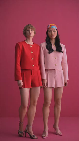Yüksek bel form, 45 cm boy ölçüsü ve iki yan cep mevcuttur.