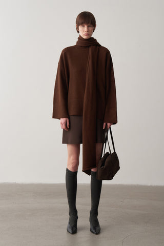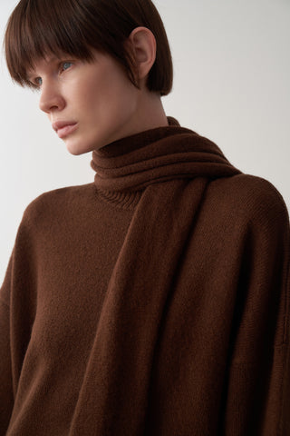 Kalın triko atkı, dikdörtgen kalıp 180 cm ölçüsüne sahiptir.