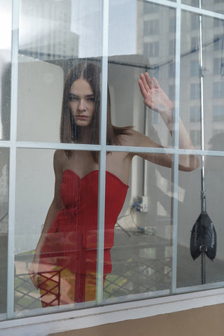 Straplez Büstiyer Pantolon Takım, Büstiyer ve pantolon olarak iki parçadan oluşmaktadır.