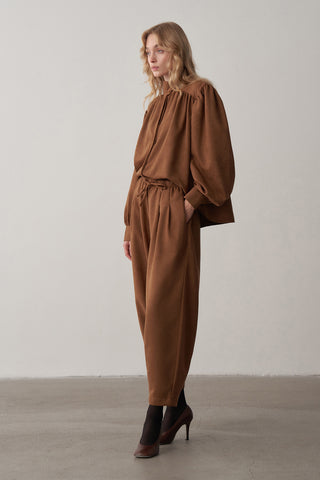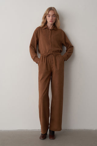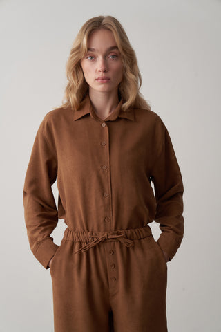 Süet Balon Kol Gömlek Pantolon takım , Gömlek ve Pantolon olarak iki parçadan oluşmaktadır.