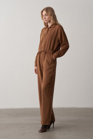 Yüksek bel, bel ayarlanabilir lastikli, iki yan cep mevcut, dökümlü formda, 93 cm boy ölçüsüne sahiptir.