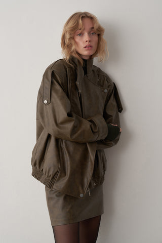 Süet Bomber Ceket Etek Takım, ceket ve etek olarak iki parçadan oluşmaktadır.